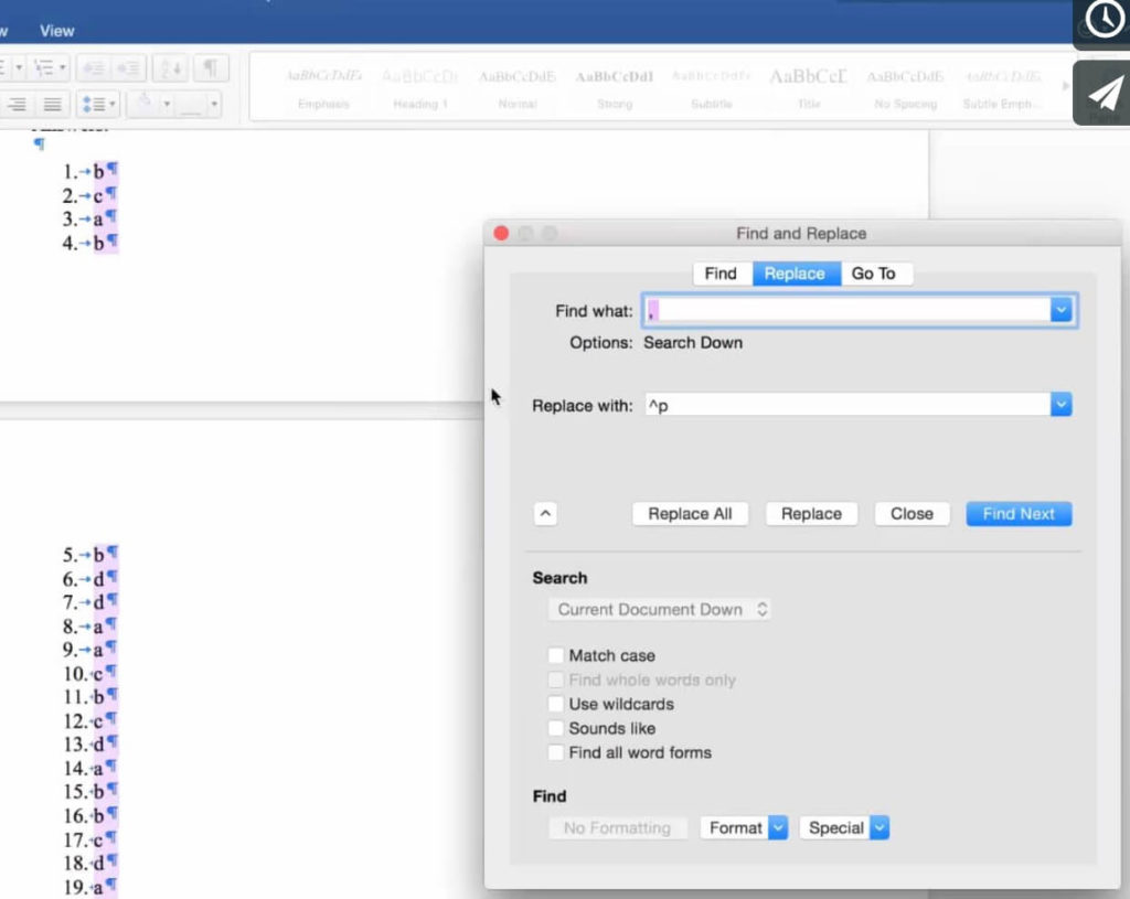Using Word’s Find and Replace to turn a comma series into a list